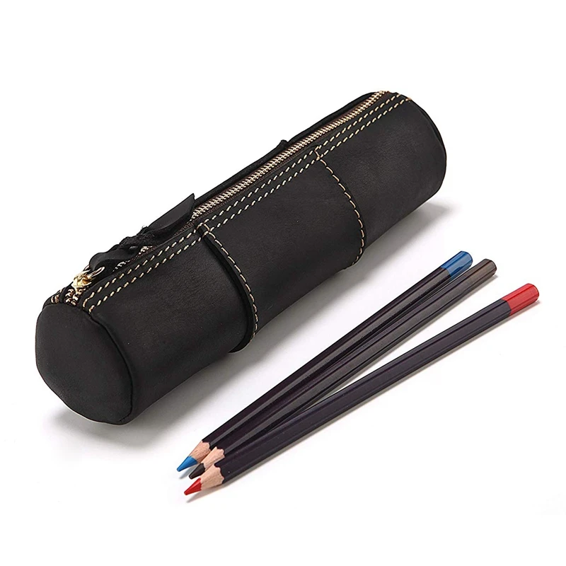 HOT Sale Genuine Leather Zipper Pen Pencil Bag Handmade Vintage Retro Style Creative Trimodal Model School S